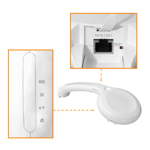 UBIQUITI GBE-LR 60GHz 5GHz 38/11dBi 57-66GHz 1-1000 airMAX 1Gbps 2km inc24V