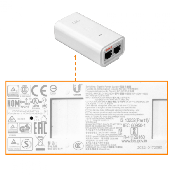 Fuente de alimentación 24VDC, 0.5A Adaptador PoE Gigabit (Incluido)